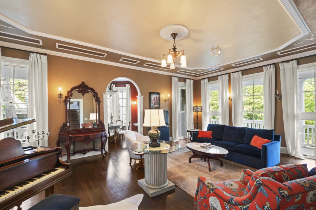 Today, wedding parties, families, and groups of friends can stay at the Reid Summer Home and be steps from the Crescent Hotel & Spa. The exclusive rental allows access to two full floors, accommodations in 4 bedrooms with private baths, a full kitchen, 4 parking spaces, plus dining and living rooms. Additionally, house guests have full access to all privileges of the Crescent Hotel & Spa. There is No Smoking, Vaping or Pets allowed.